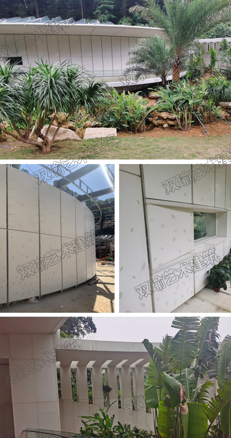广州市双瑜建筑艺术工程有限公司建筑采用清水混凝土产品作为外墙装饰板,清水混凝土朴实无华、自然沉稳的外观韵味,与生俱来的厚重与清雅,清水混凝土结构一次成型,不剔凿修补、不抹灰。